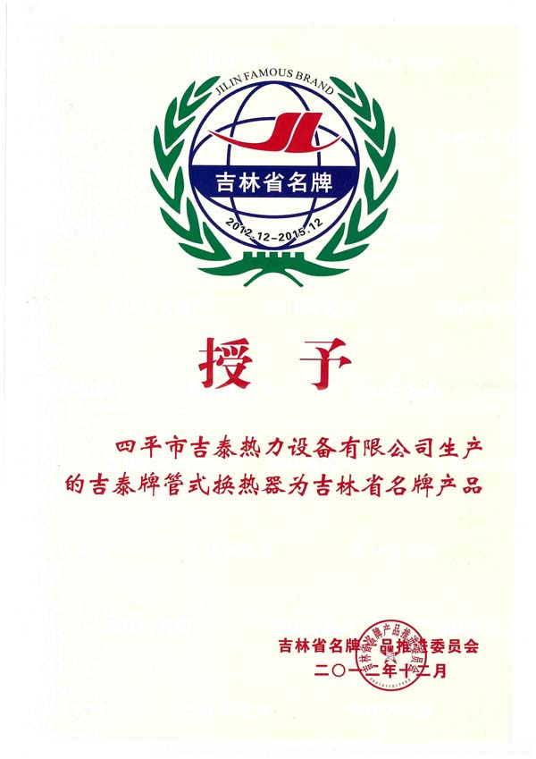 四平市吉泰熱力設(shè)備有限公司始建于1996年,坐落在全國衛(wèi)生園林城市,擁有“中國換熱器基地”美譽(yù)的四平市,公司擁有雄厚的技術(shù)力量和人才優(yōu)勢(shì),國內(nèi)生產(chǎn)設(shè)備,完善的檢測(cè)手段,是吉林省集設(shè)計(jì)、開發(fā)、生產(chǎn)經(jīng)營于一體的換熱設(shè)備生產(chǎn)企業(yè)。